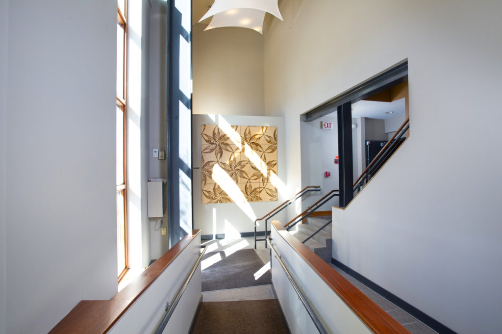 We’ve continually added energy-saving features to this building, which was built in 1982. Some of those include solar shades to maximize passive solar energy, high-efficiency lighting, water-saving devices, replacement windows, and a cooling tower. The building’s rooftop is used by our tenants for seasonal events and gatherings. Others can book the deck for private gatherings through the Portland Regency Hotel & Spa.